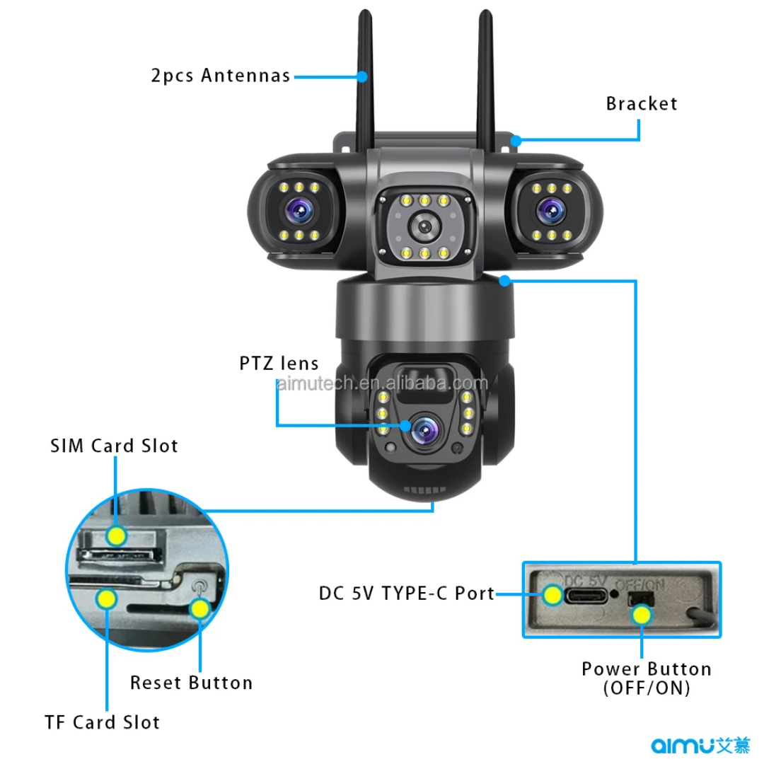 طراحی مقاوم و استاندارد IR66، این دوربین را برای نصب در فضای باز و شرایط جوی مختلف مناسب کرده است و با پشتیبانی از کارت حافظه میکرو تا 128 گیگابایت، میتوانید تمام تصاویر و ویدئوهای ضبطشده را ذخیره و مدیریتسه لنز مستقل و قابل تنظیم: پوشش کامل محیط و از بین بردن نقاط کور
