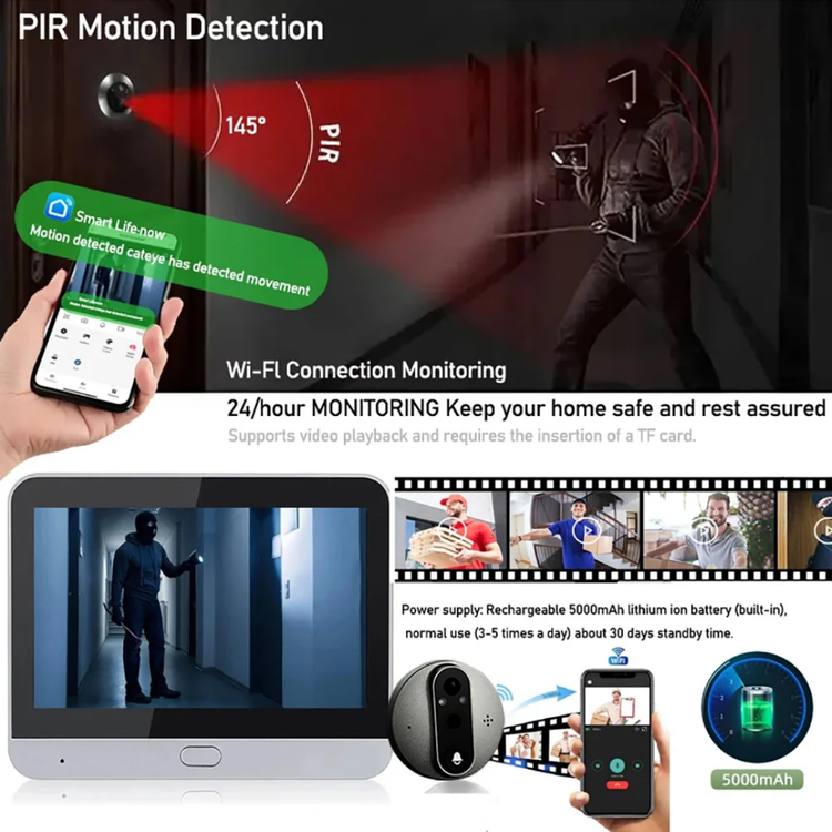 در کنار دوربین یک لنز تشخیص حرکت نیز قرار دارد و با آن اگر فرد پشت درب، زنگ هم نزند دستگاه متوجه حضور آن می شود و از آن تصویر تهیه می کند و به شما اعلان ارسال می کند که این قابلیت بسیار در جلوگیری از سرقت کاربردی است و با آن می توانید متوجه حضور هر فردی شوید. ترکیب قیمت مناسب و کیفیت بالا، خرید دوربین چشمی درب را متمایز کرده استنکنید.شوید.شوند